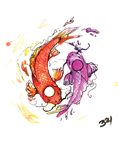 Koi dancers. This Watercolor painting came to life also during Winter season, this time in Minnesota, US. It was a good way to distract my mind from the white landscape outside the window.